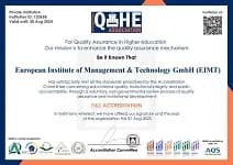 EIMT' s commitment to delivering accessible and high-quality education perfectly aligns with QAHE's mission to uphold quality assurance in pre-tertiary and higher education across the globe.
